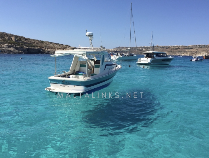 小さなコミノ島は、美しいブルーラグーンで有名です。